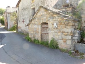Côté Sud à l’entrée du village, sur une petite place la fontaine est surmontée par l’écusson du village taillé dans une pierre calcaire sur laquelle sont sculptées trois mûres symbole du village.